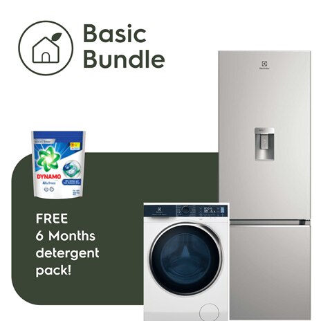 Inclusive of 2 appliances: 8/5kg UltimateCare 300 washer dryer (4 Ticks Water Efficiency); 335L UltimateTaste 300 bottom freezer refrigerator